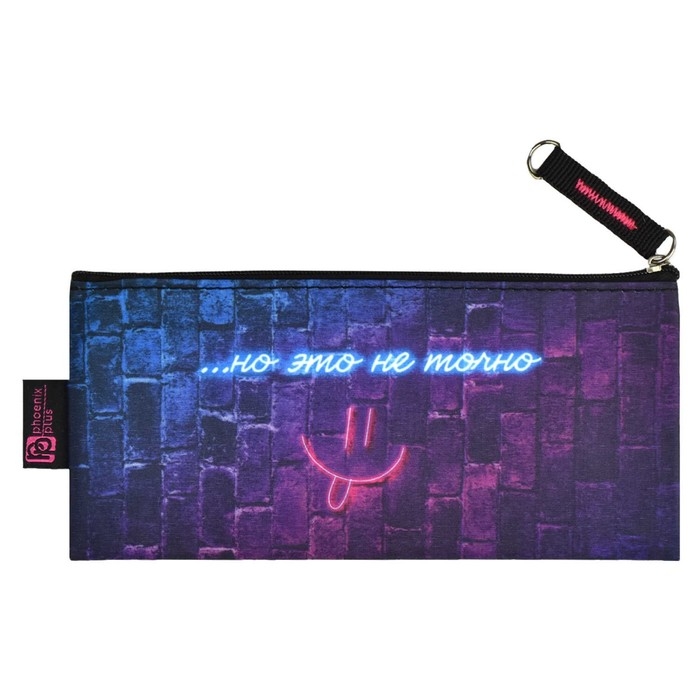 Пенал мягкий, 1 отделение, 90 х 195 мм, плоский, Феникс "Яркие фразы" синий 65283