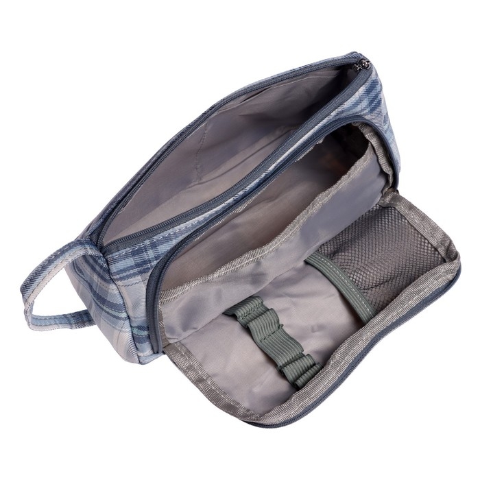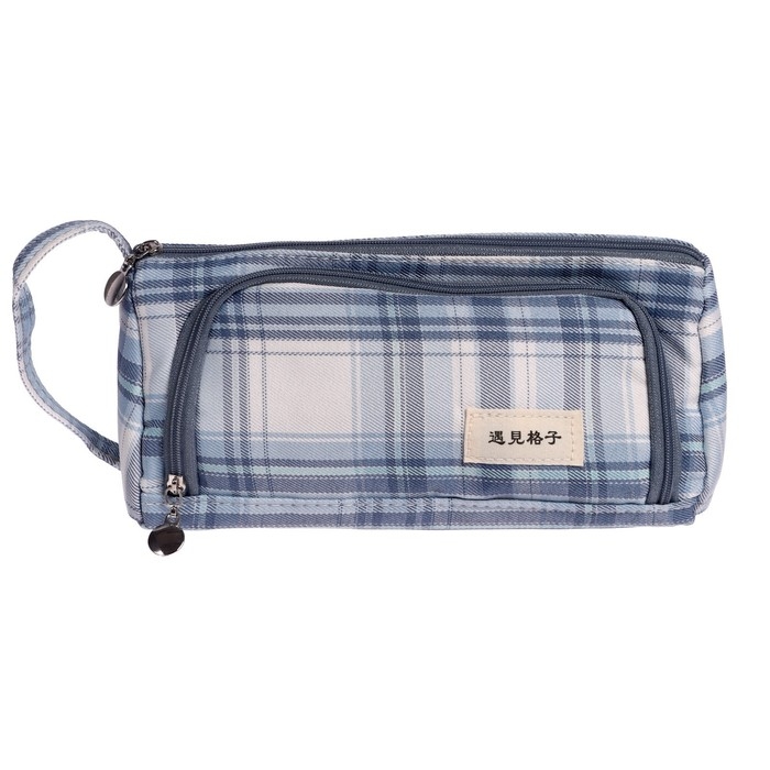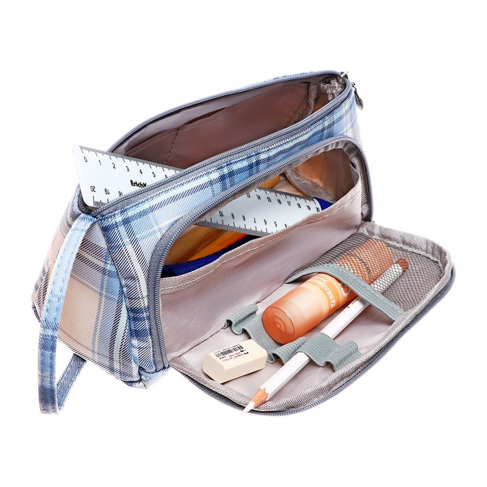 Пенал мягкий 2 отделения, 95 х 210 х 90 мм, объёмный с откидной планкой, с ручкой, Calligrata, "Шотландка", серо-белая