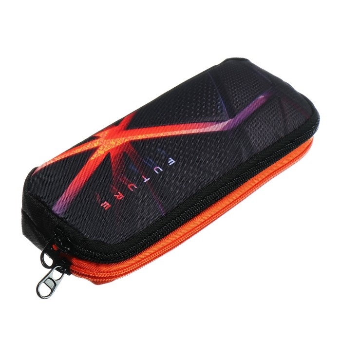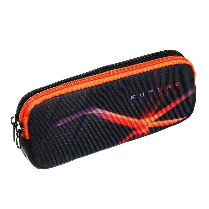 Пенал мягкий, 2 отделения, объёмный, 90 х 220 х 40 мм, Stavia "Future" чёрный/оранжевый 86196