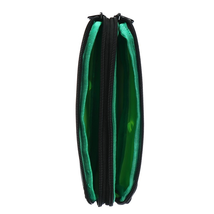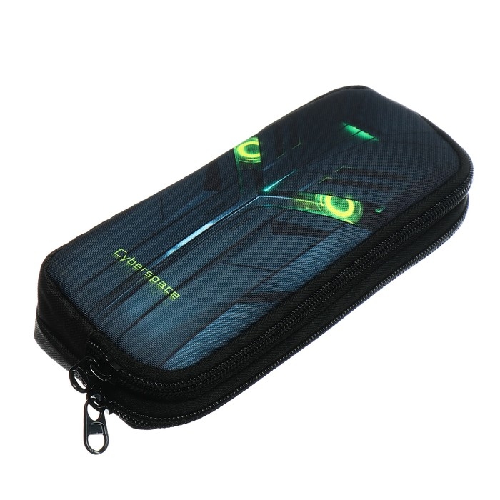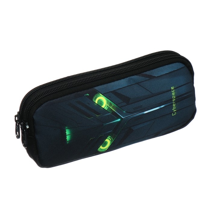 Пенал мягкий, 2 отделения, объёмный, 90 х 220 х 40 мм, Stavia "Кибер" чёрный/зелёный 86210