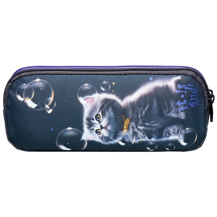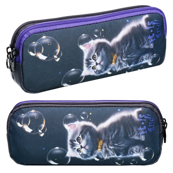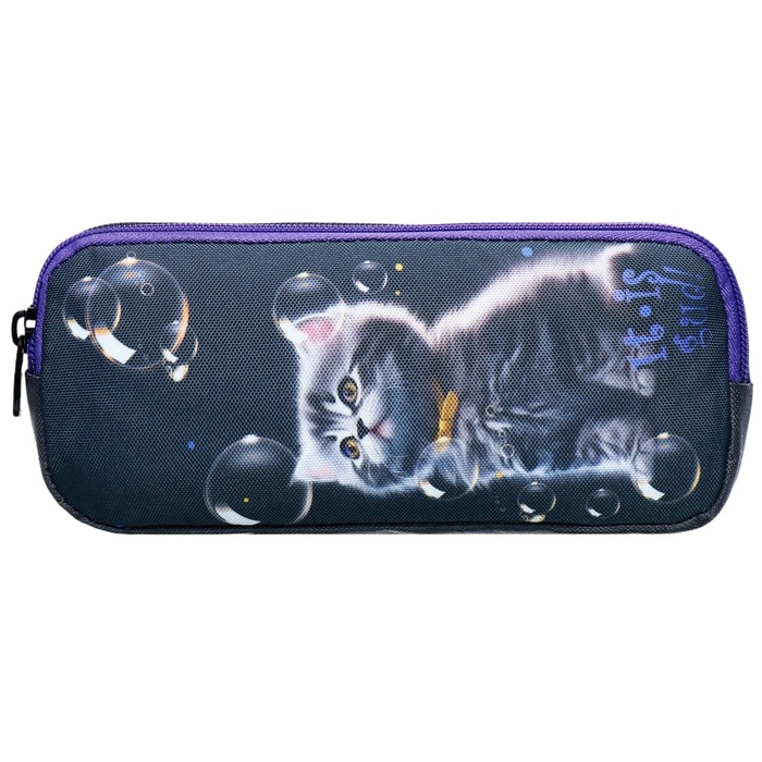 Пенал мягкий, 2 отделения, объёмный, 90 х 220 х 40 мм, Stavia "Мыльные пузыри" чёрный 86229