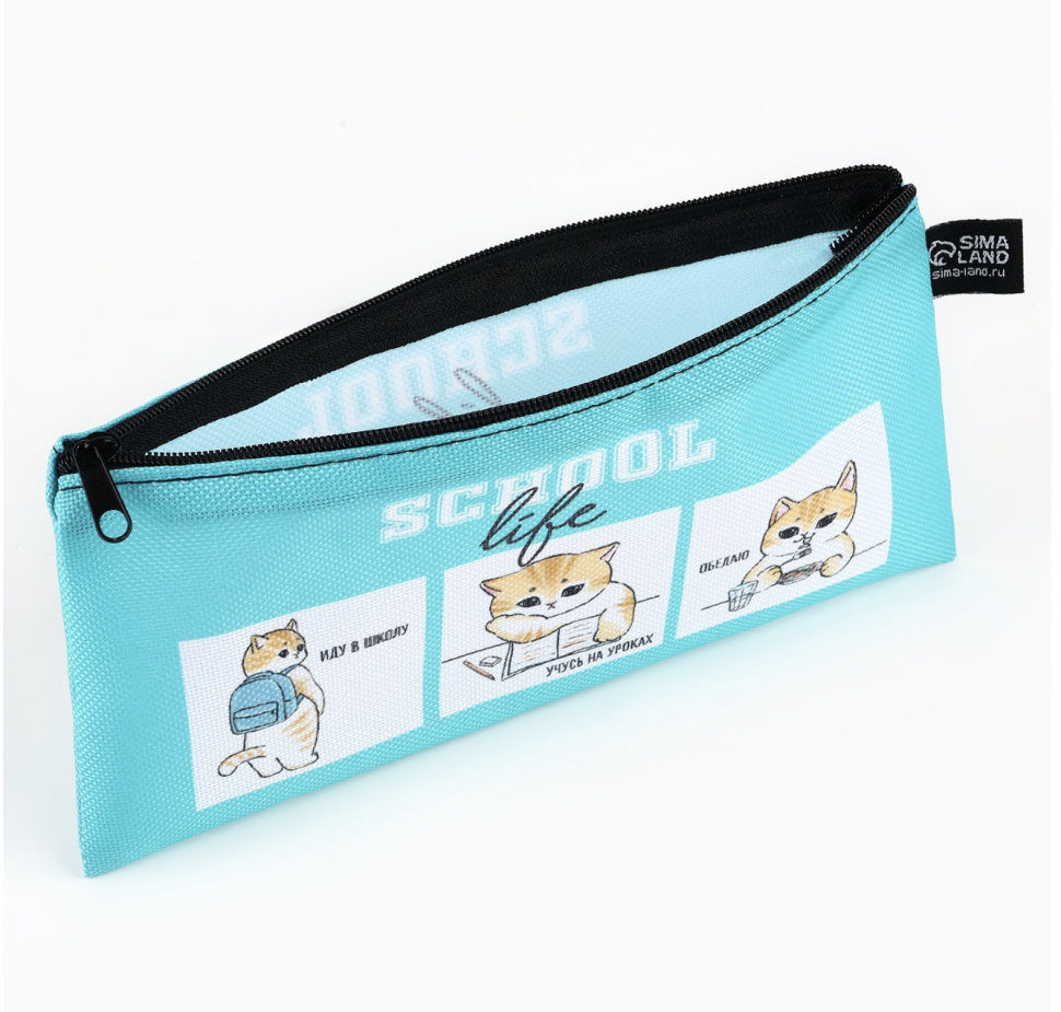 Пенал школьный текстильный «1 сентября: Котик в школе», 20 х 8 см