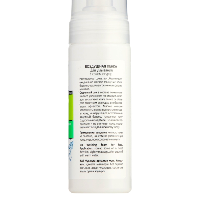 - Огуречный сок в составе пенки успокаивает, увлажняет, тонизирует, освежает и смягчает кожу, также он обладает заметным вяжущим и отбеливающим эффектом.