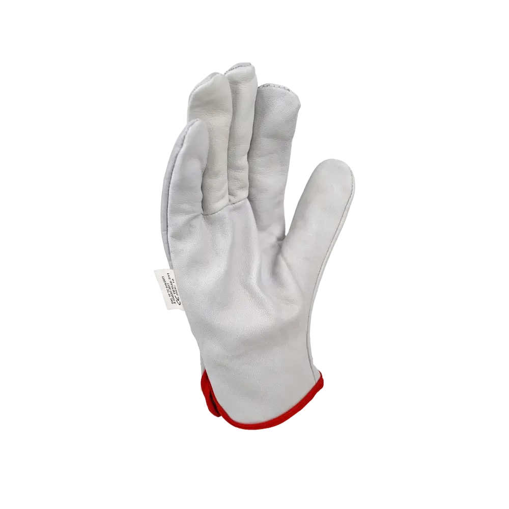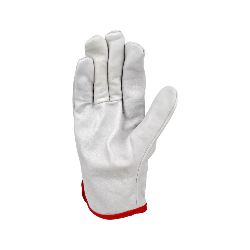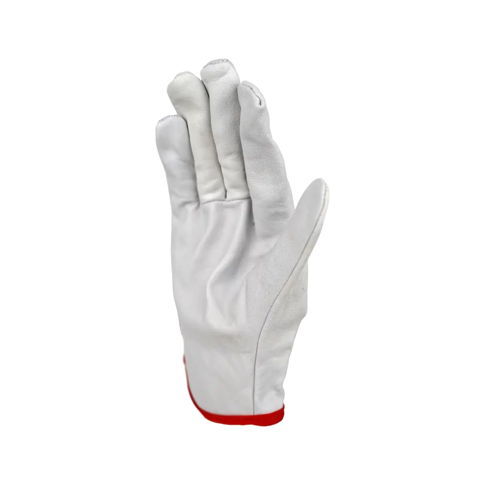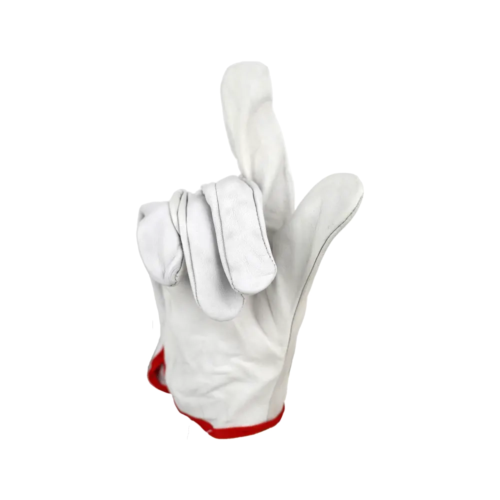 Перчатки из кожи (белого или бежевого цвета). Кожа толщиной 1,1 мм (+/- 0,1), сорт АВ. На запястье резинка. Перчатки предназначены для защиты рук от ОПЗ, истирания, обеспечивают высокий комфорт, рекомендованы для продолжительного ношения, при работе с инструментом, для водителей.