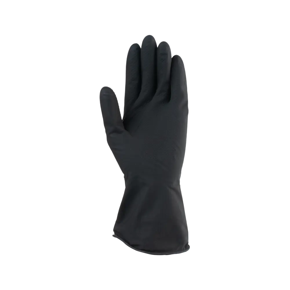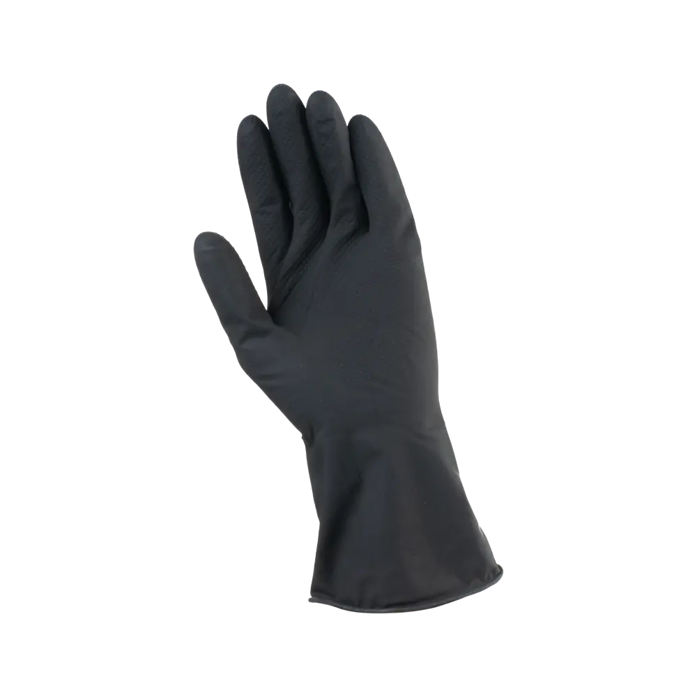 Перчатки КЩС Тип 2 состоят из двух слоев. В составе верхнего – латекс с добавлением сажи. Внутренний изготовлен из латекса высокого качества, который предотвращает возникновение аллергических реакций. Небольшая толщина изделия помогает выполнять точные работы. При этом сохраняется высокая тактильная чувствительность пальцев. Основное применение: защита рук при работе с растворами кислот и щелочей (до 20%), солями, сыпучими и красящими веществами, растительными и животными жирами.