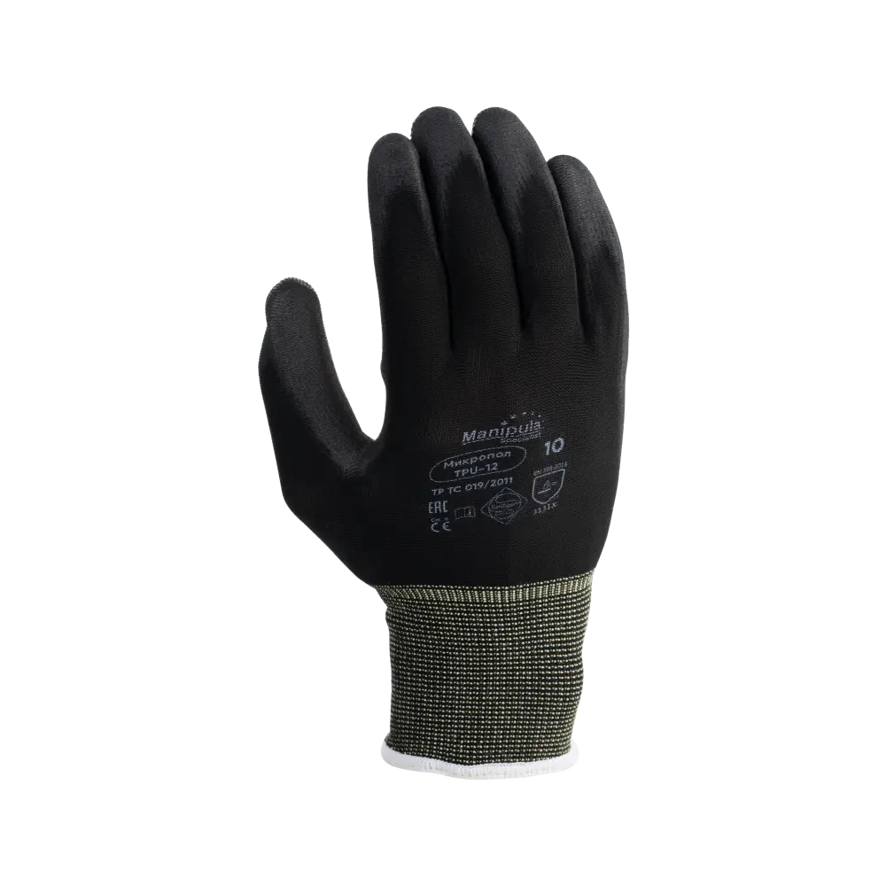 Перчатки нейлоновые с полиуретаном Manipula МикроПол (TPU-12), р.7 черные