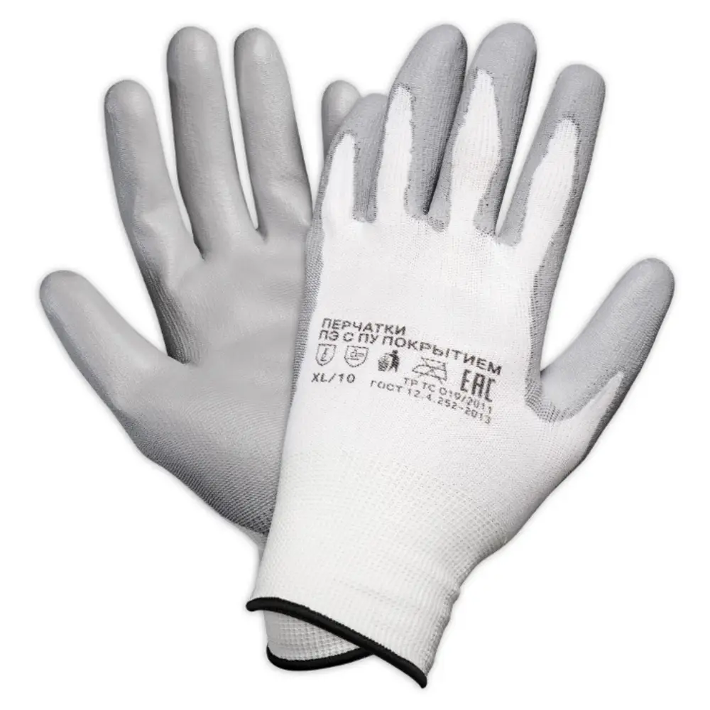Перчатки полиэфирные с цельным ПУ покрытием ладони (XL) бел