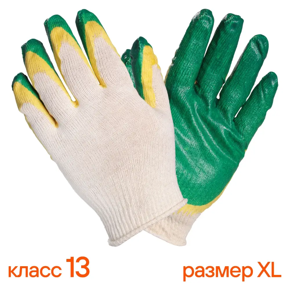 Перчатки трикотажные ХБ с двойным латексным покрытием ладони, (5 пар)