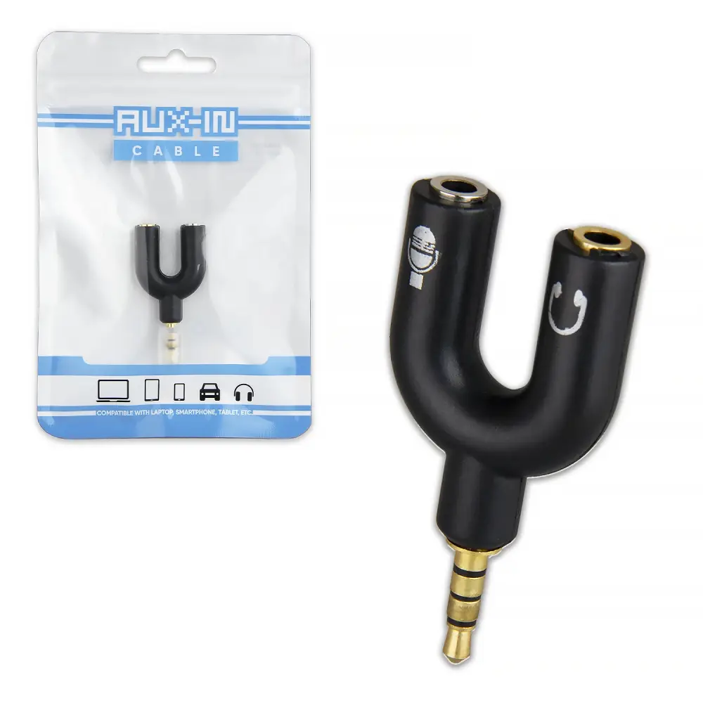 Переходник AUX на 2 AUX N-101 (под наушники + микрофон) черный