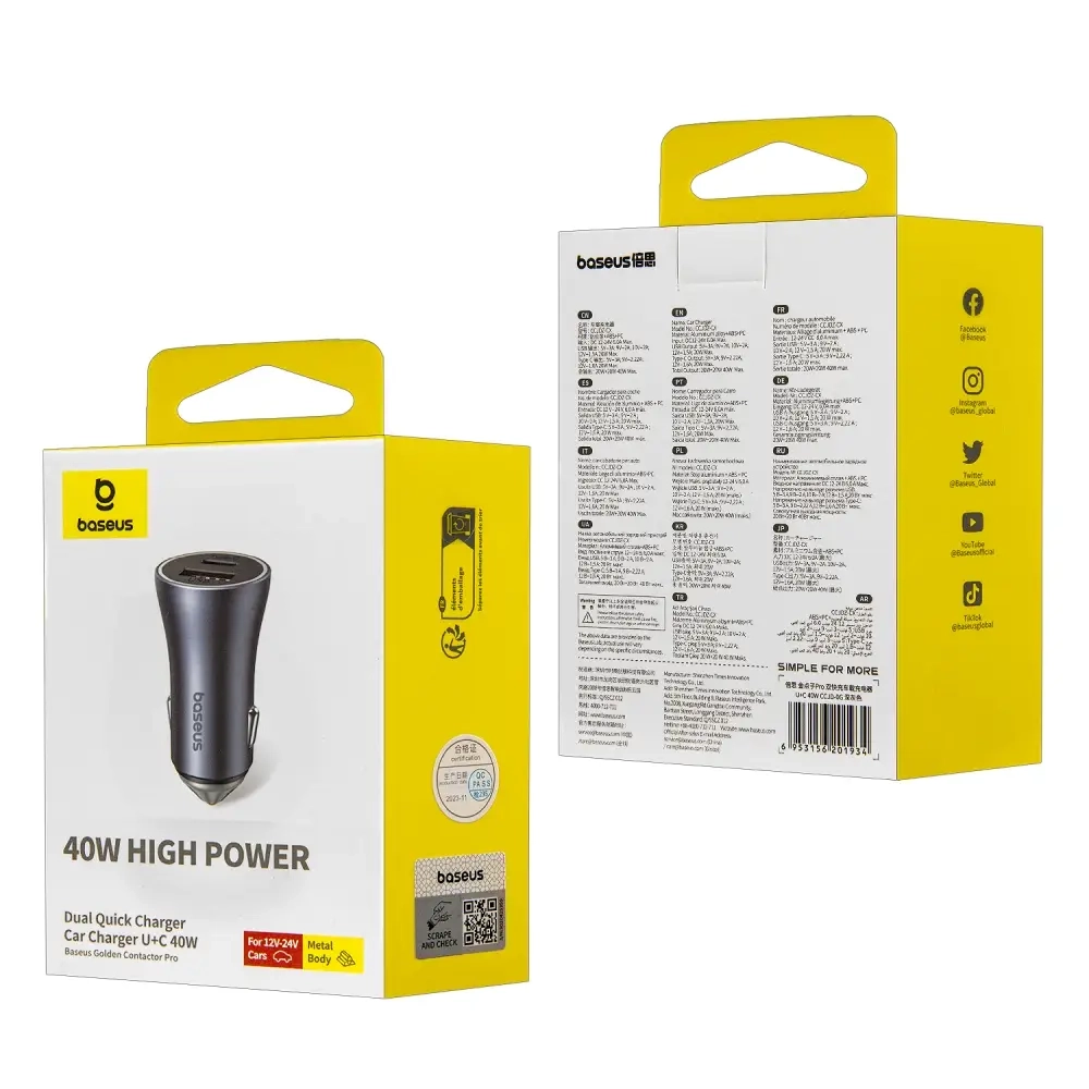 Переходник АЗУ на USB + Type-C 40W CCJD-0G Baseus серый