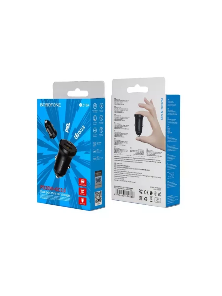 BZ18A - это компактное автомобильное зарядное устройство от известного бренда BOROFONE. Устройство имеет современный дизайн и два разъема для зарядки - USB и Type-C, с технологией быстрого заряда Quick Charge 3.0 и PD. Корпус сделан из прочного ABS. Устройство является продолжением линейки зарядных устройств от BOROFONE, где каждая новая модель является усовершенствованной версией предыдущей.