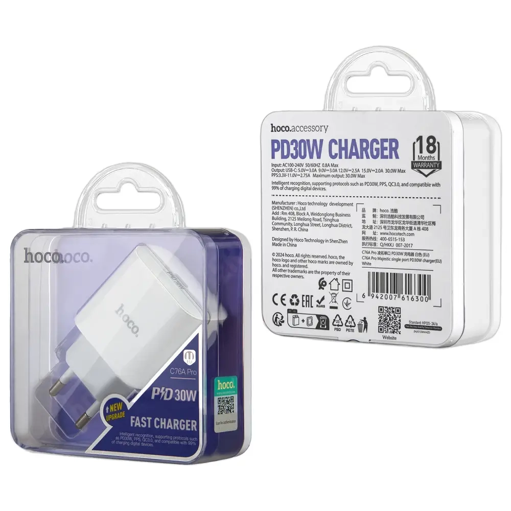 Переходник C76A Pro СЗУ на Type-C 30W HOCO белый