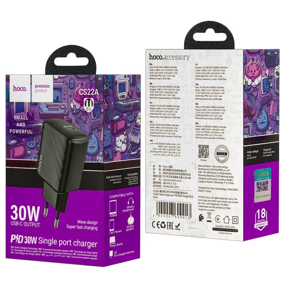 Переходник CS22A СЗУ на Type-C PD30W HOCO черный