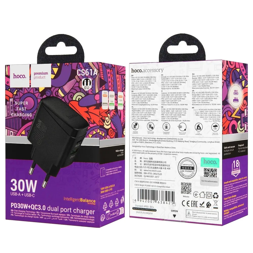 Переходник CS61A СЗУ на USB QC3.0 + Type-C PD30W HOCO черный