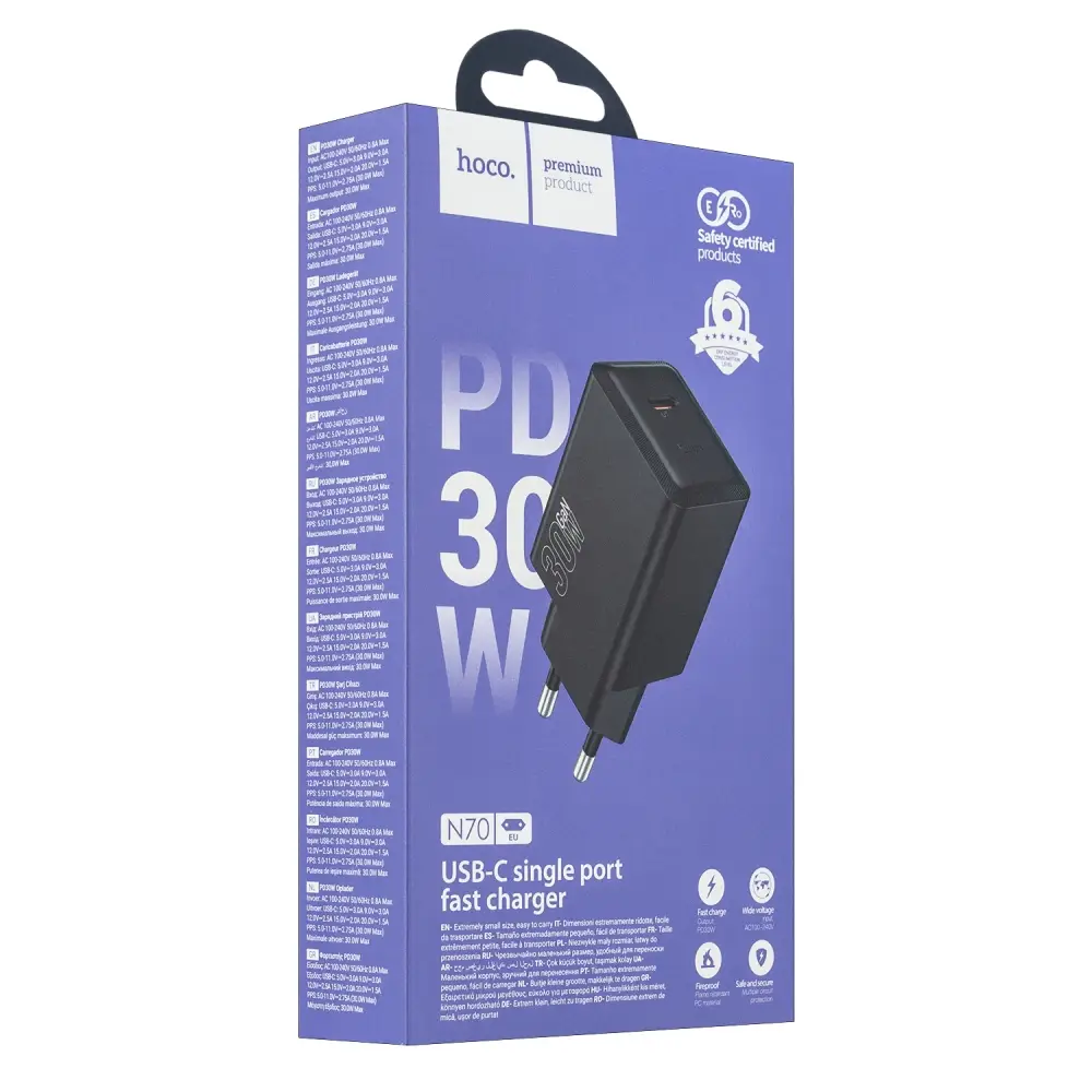 Переходник N70 СЗУ на Type-С PD 30W HOCO черный