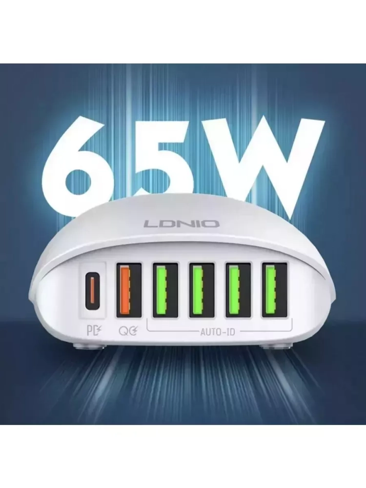 Переходник СЗУ на 5 USB + Type-C 65 WA6573C LDNIO