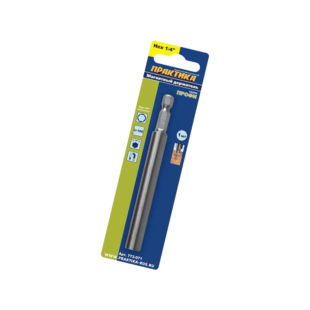 Переходник удлинитель магнитный держатель 100 мм для бит 1/4" цельнотянутый, Практика 773-071