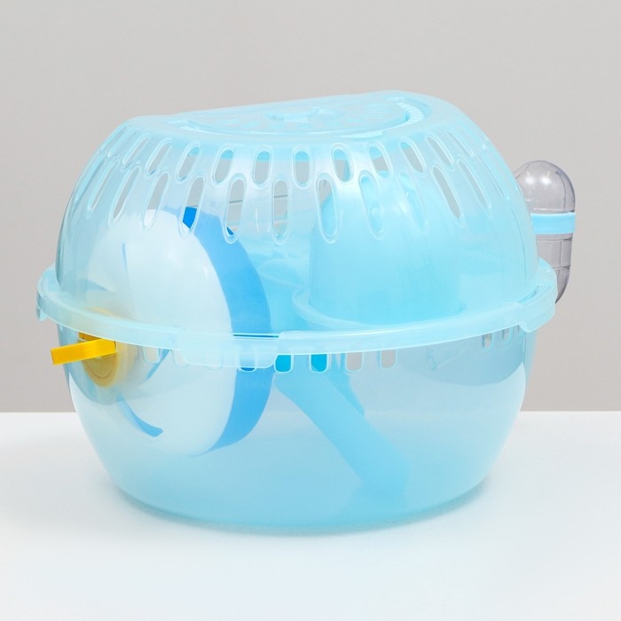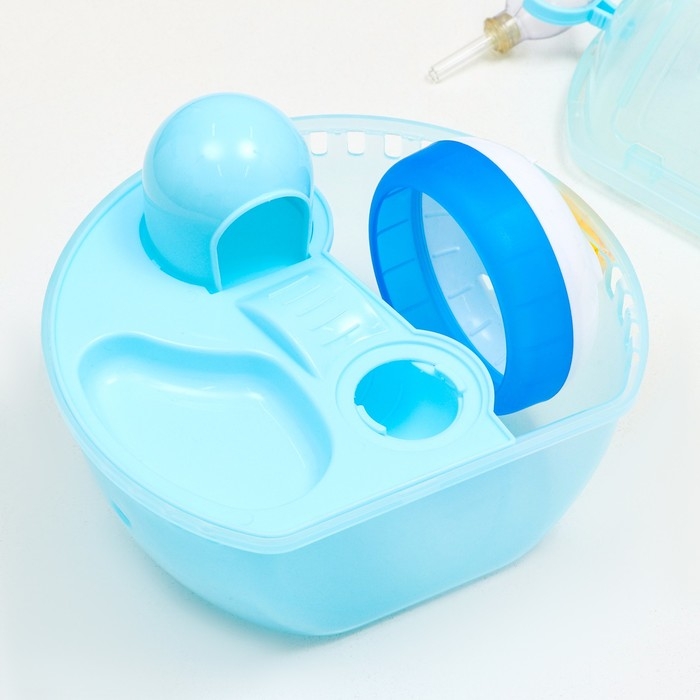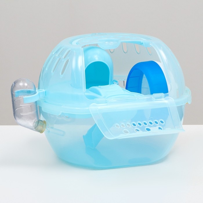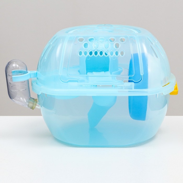 Переноска для грызунов Carno с домиком, полкой, поилкой, 29х23х23 см, синяя