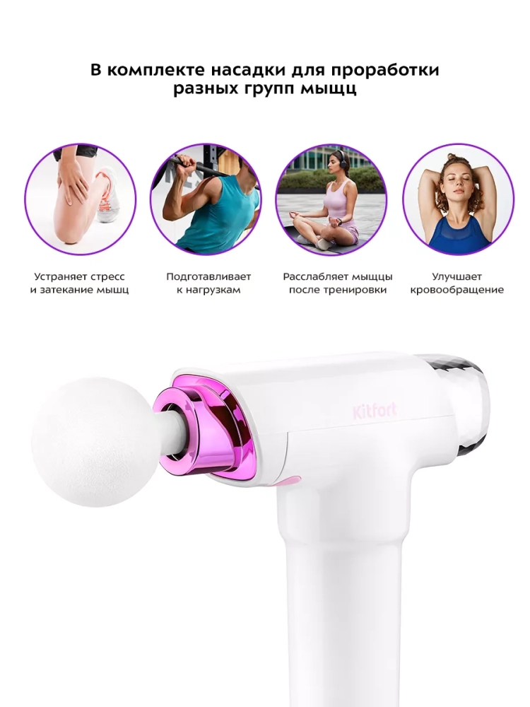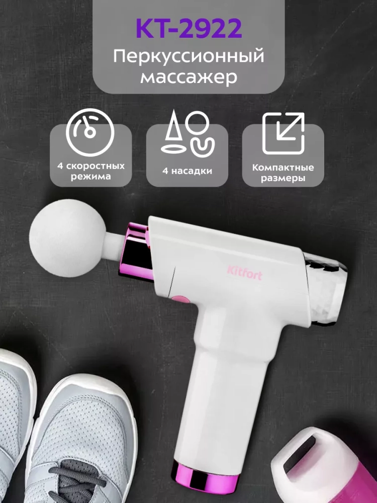 Перкуссионный (ударный) массажер Kitfort KT-2922, поможет избавиться от мышечной усталости, боли, спазмов и ограниченной подвижности.