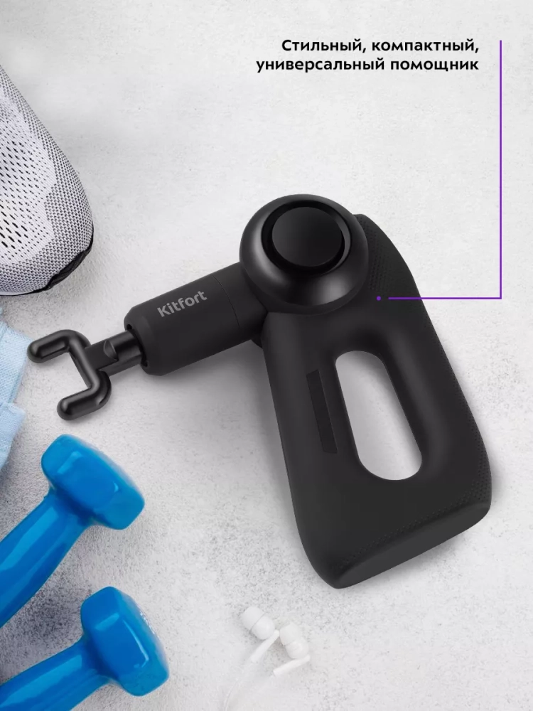 Перкуссионный (ударный) массажер Kitfort KT-2965 поможет избавиться от мышечной усталости, боли и спазмов.