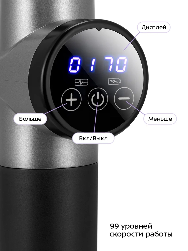 Ударный массажер позволяет восстановить свободу движений, избавиться от токсических продуктов обмена веществ, а также улучшает кровообращение. Прибор помогает расслабить мышцы после тренировки.