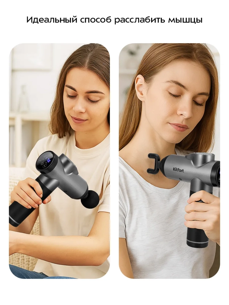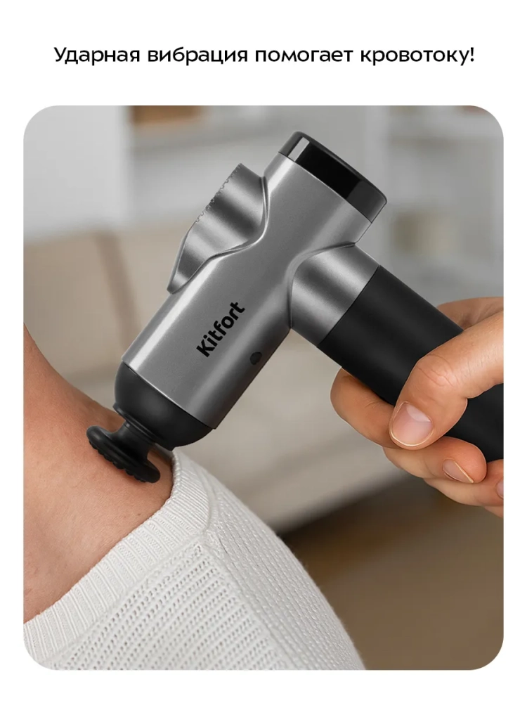 Перкуссионный (ударный) массажер Kitfort KT-5933 поможет избавиться от мышечной усталости, боли и спазмов.