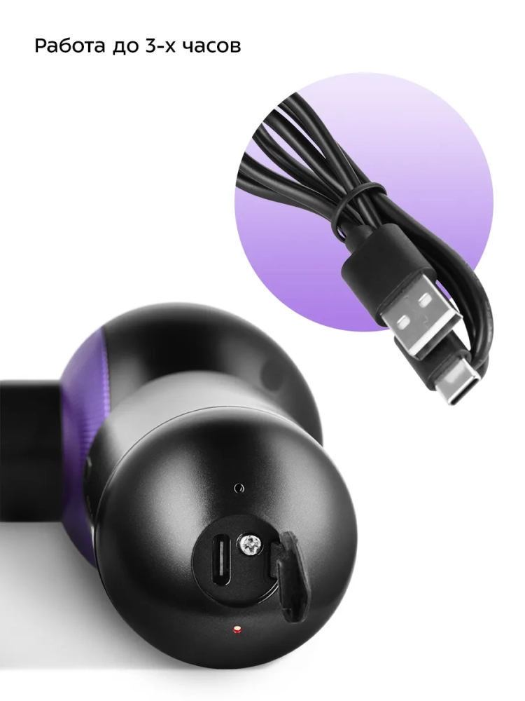 Модель КТ-2987 работает от аккумулятора, поэтому массажер можно брать с собой куда угодно: в спортзал, в офис, в поездку или использовать дома. Можно делать массаж, не снимая одежду. Перкуссионный массажер позволит мышцам расслабиться, а также улучшит кровоток и избавит от боли.