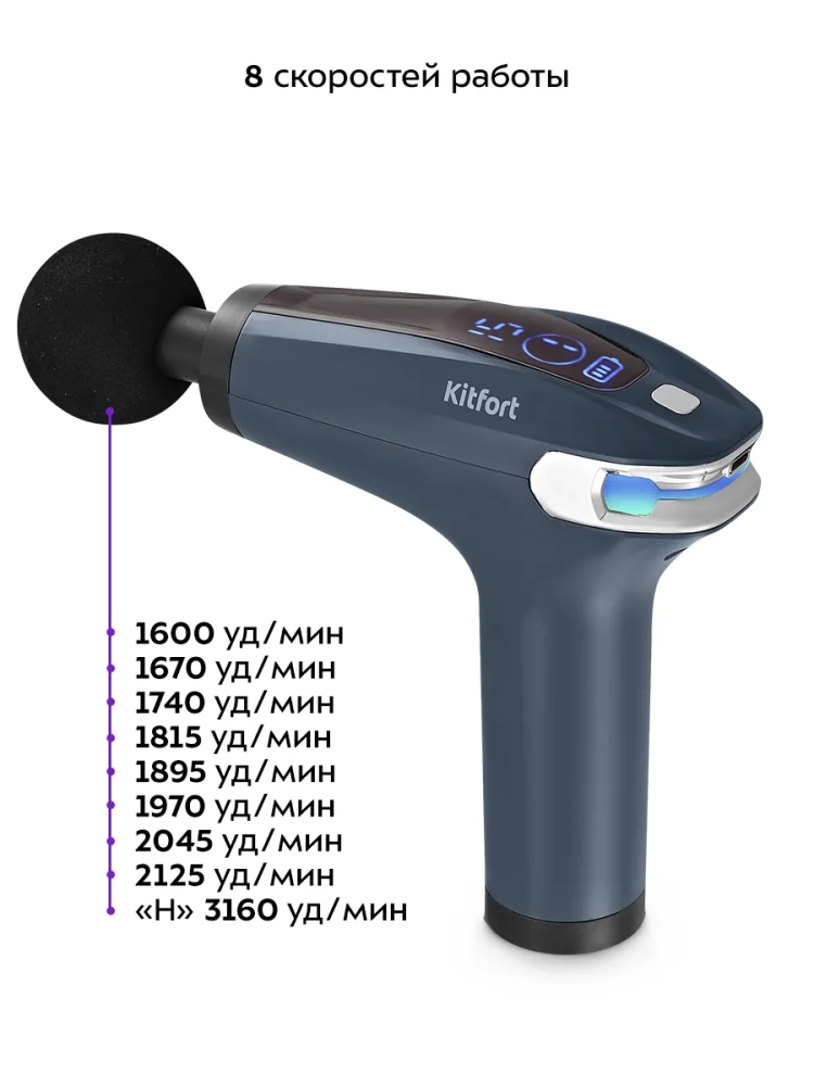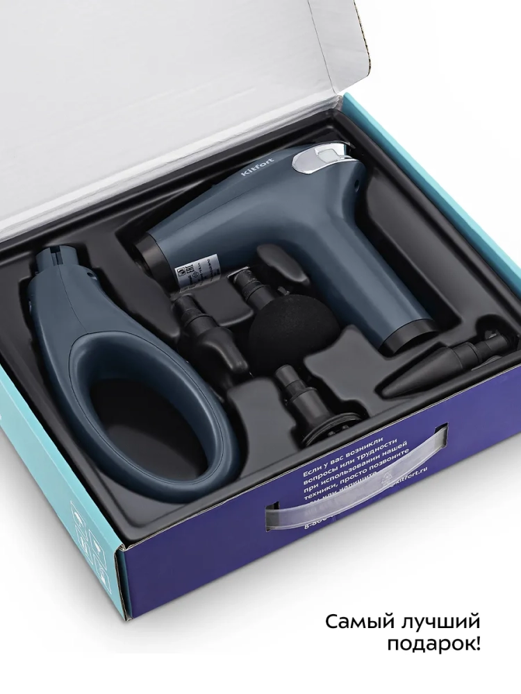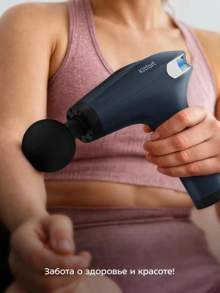 Перкуссионный массажер Kitfort КТ-2997 поможет избавиться от мышечной усталости, боли и спазмов.
