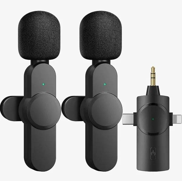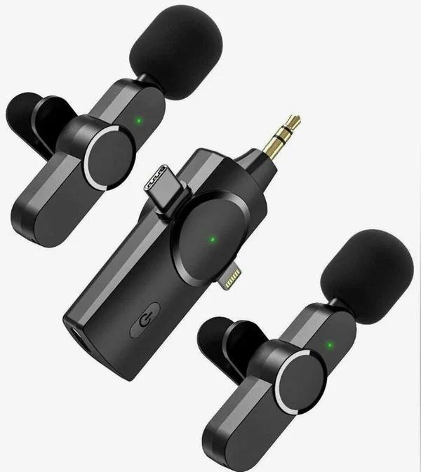 Универсальное подключение. Приёмник имеет сразу три разъёма для подключения к любому устройству: Lightning, Type-C и стерео Jack 3.5 мм. Также, в комплекте есть кабель-переходник с джека 3,5 мм. 3-pin на джек 3.5 мм 4-pin. Микрофон совместим с большинством смартфонов, планшетов, DSLR камер, любительских видеокамер, ПК и т. д. 2 перезаряжаемых микрофона-передатчика. В передатчик встроен всенаправленный петличный микрофон на клипсе. Передатчик оснащён встроенным аккумулятором, который заряжается через порт USB-C всего 80 минут, а работает до 7-ми часов. Одно нажатие на кнопку включения и звук переходит в стадию mute. Перезаряжаемый приёмник. Приёмник оснащён встроенным аккумулятором, который заряжается через порт USB-C всего 70 минут, а работает до 20 часов. Приёмник можно заряжаться в процессе работы, при этом не создавая никаких помех. Длинная дистанция приёма без помех. Дальность передачи до 15 метров с преградами, до 60 метров при прямой видимости.