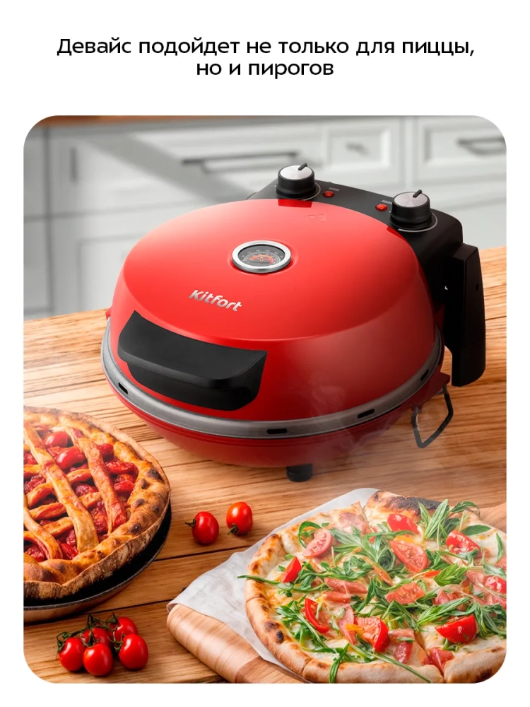 Пиццамейкер Kitfort KT-4645 идеально подходит для приготовления пиццы, пирогов, хлеба и другой выпечки.