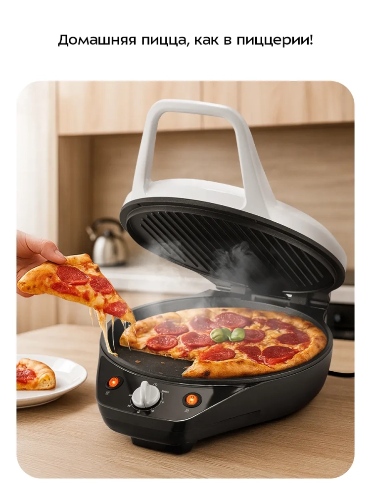 Электрический пиццемейкер Kitfort — это не просто печь для пиццы, но и универсальный мейкер для различных блюд. Благодаря своей функциональности, он может использоваться для приготовления сырников и пирожков, что делает его незаменимым помощником на кухне. Двойная конструкция печки обеспечивает равномерное пропекание, а встроенный таймер позволяет точно контролировать время приготовления.