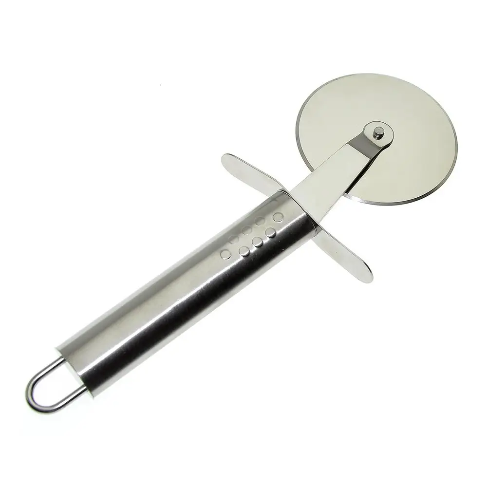 Нож для пиццы — идеальное приспособление для нарезания пиццы и заготовок из теста. Дисковый нож с острым лезвием поможет вам без труда разрезать не только готовую пиццу, но и сделать заготовки из теста для приготовления чебуреков, равиоли, пельменей. Пиццерезка изготовлена из коррозионностойкой (нержавеющей) стали. После применения рекомендуется мыть мягкой щеткой с использованием жидких моющих средств. Для удобства хранения на крючке предусмотрена петелька.