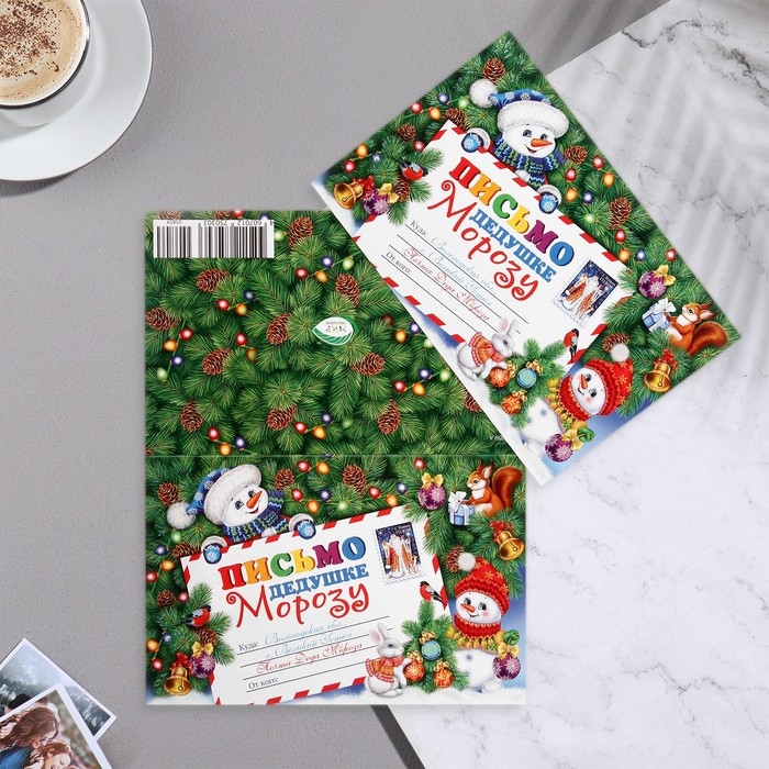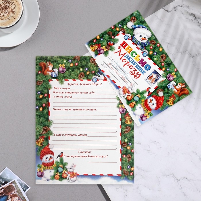 Письмо Дедушке Морозу глиттер, конгрев, снеговики, 12,5х19,5 см