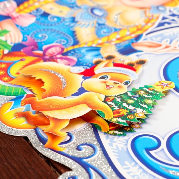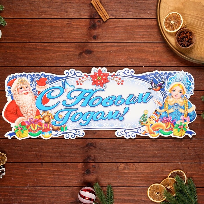 Плакат фигурный "С Новым Годом!" Дед Мороз и Снегурка 63 х 23 см