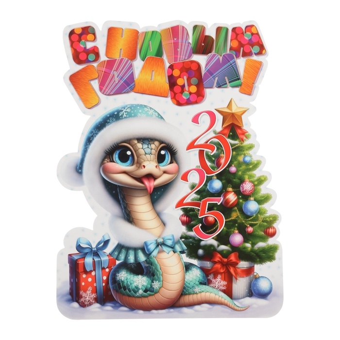 Плакат "С Новым Годом! 2025" символ года, капюшон, 30 х 40 см