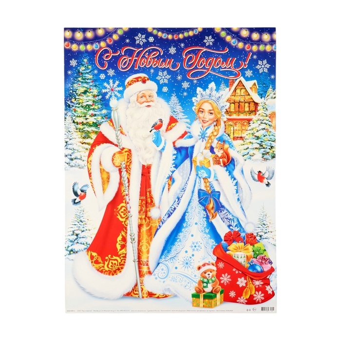 Плакат "С Новым Годом!" Дед Мороз, Снегурочка, 44,5х60 см