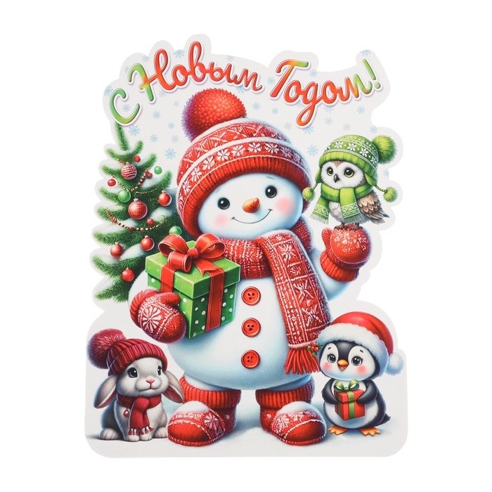 Плакат "С Новым Годом!" снеговик, зверята, 30 х 40 см