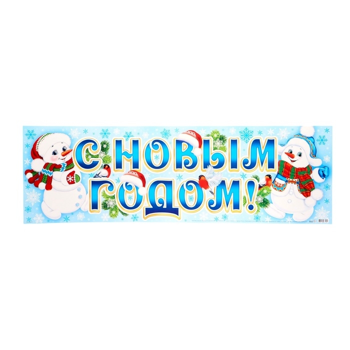 Плакат "С Новым Годом!" снеговики, 92 х 30 см