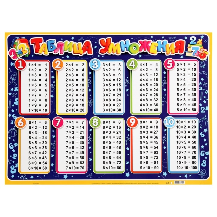 Плакат "Таблица умножения" синий фон, 44,6x60 см