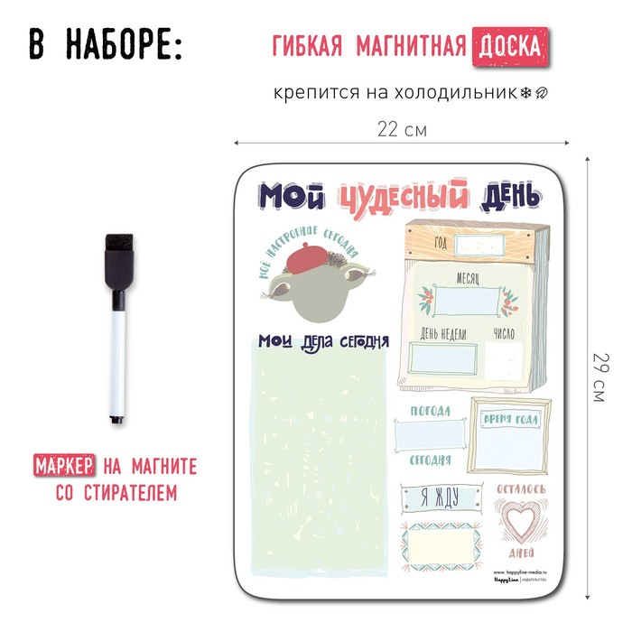 Планер магнитный с маркером "Мой чудесный день" 22 х 29 см