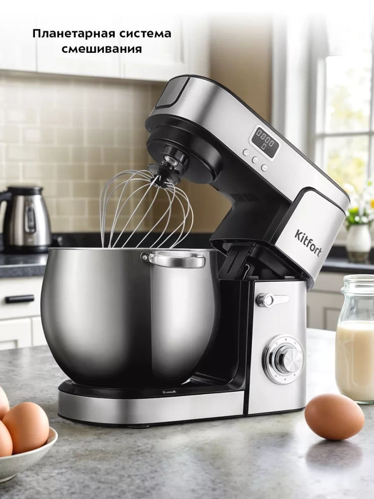 Миксер оснащен планетарной системой смешивания. Это обеспечивает идеальное качество смешивания без комков.
