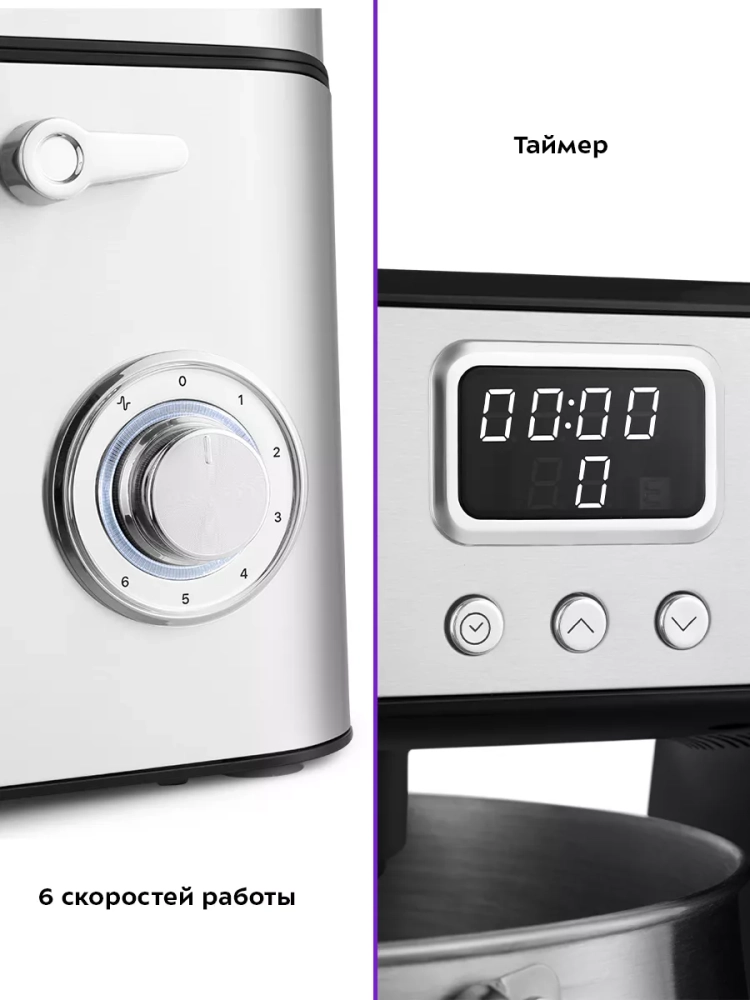 Миксер оснащен таймерами прямого и обратного отсчета.