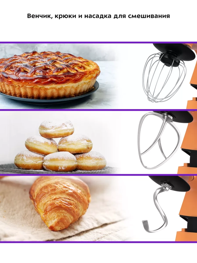 Этот стационарный миксер — это не просто бытовая техника, а полноценный кухонный гаджет, который облегчит приготовление блюд. Он автоматически выключается при откидывании моторного блока, что обеспечивает безопасность использования. Миксер Kitfort КТ-3431 — это надежный и многофункциональный прибор для вашей кухни, который объединяет в себе все необходимые функции для приготовления разнообразных блюд.