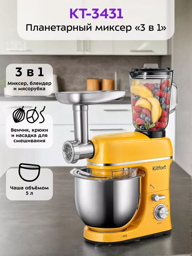Планетарный миксер кухонный электрический КТ-3431 (3 в 1)