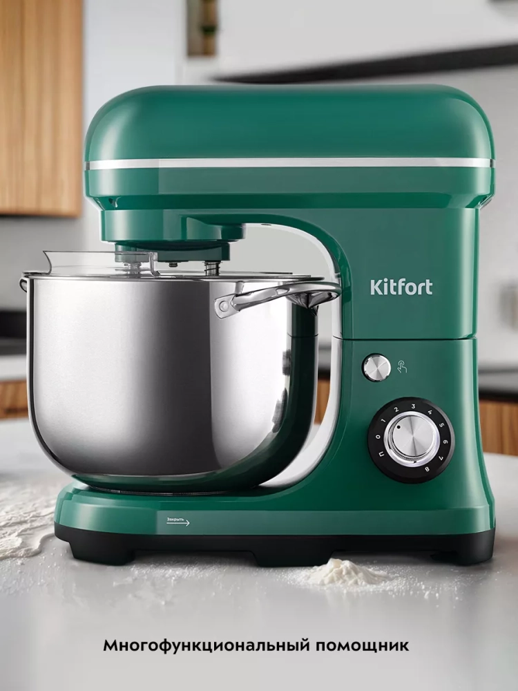 Планетарный миксер Kitfort КТ-3462 поможет вам смешать ингредиенты, взбить яичный белок или сливки, приготовить картофельное пюре, соус, крем, мусс, замесить жидкое тесто для блинов и крутое — для пельменей и пирогов. В комплекте есть четыре насадки.