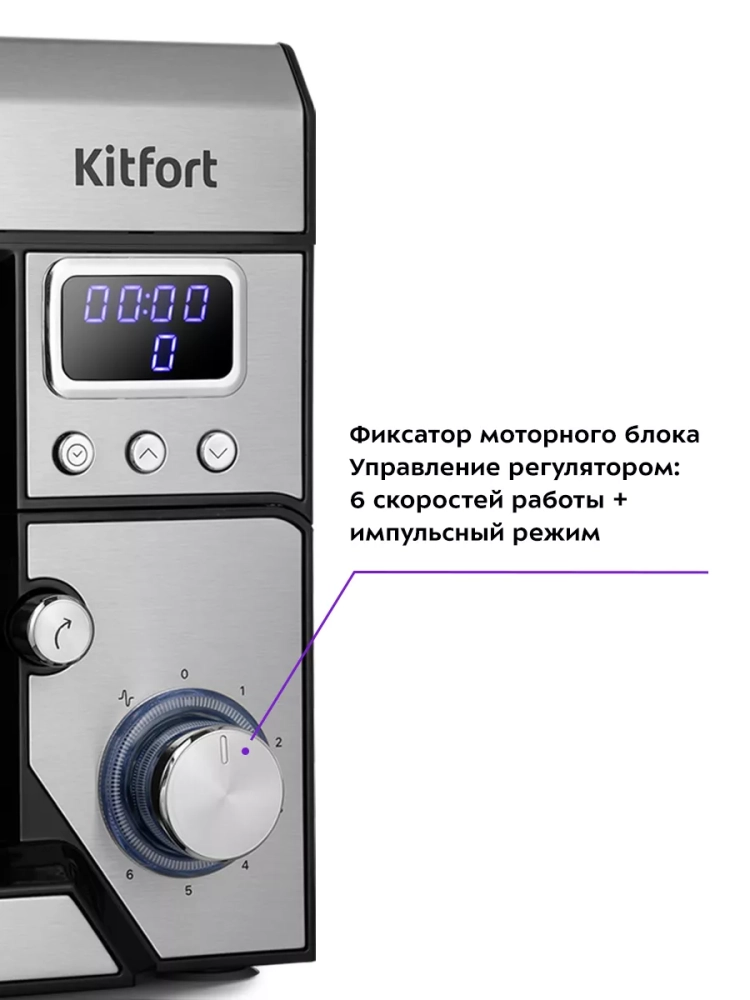 Миксер оснащен таймерами прямого и обратного отсчета. По таймеру прямого отсчета вы можете засечь время, которое требуется для взбивания, смешивания или замешивания ингредиентов, а в следующий раз сразу выставить это время на таймере обратного отсчета. По истечении выставленного времени миксер автоматически выключится.