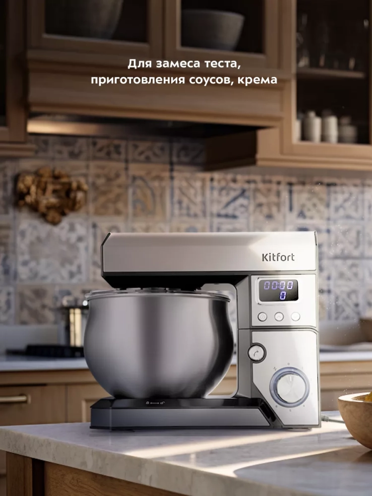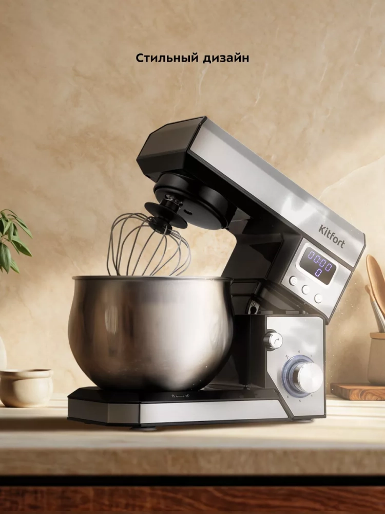 Планетарный миксер Kitfort КТ-3470 поможет вам смешать ингредиенты, взбить яичный белок или сливки, приготовить картофельное пюре, соус, крем, мусс, замесить жидкое тесто для блинов и крутое — для пельменей и пирогов. В комплекте есть три насадки.