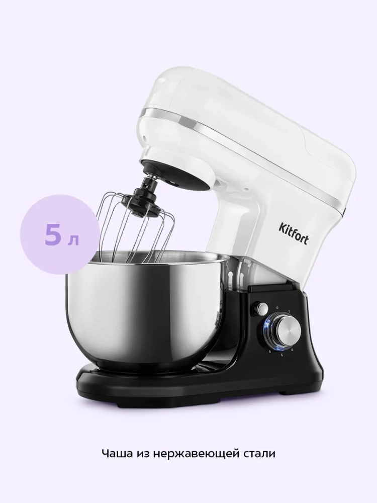 Миксер оснащен чашей емкостью 5 литров.