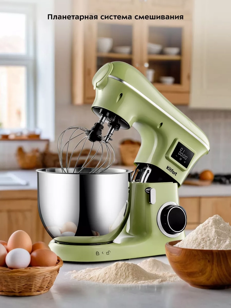 Планетарный миксер оснащен таймерами прямого и обратного отсчета.