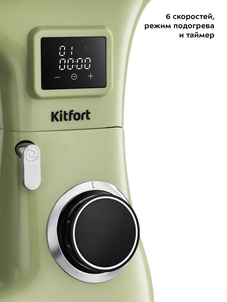 У прибора 6 скоростей и режим «Подогрев». В режиме «Подогрев» чаша миксера будет подогреваться до 38 °С. Этот режим позволяет провести расстойку теста прямо в чаше миксера.
